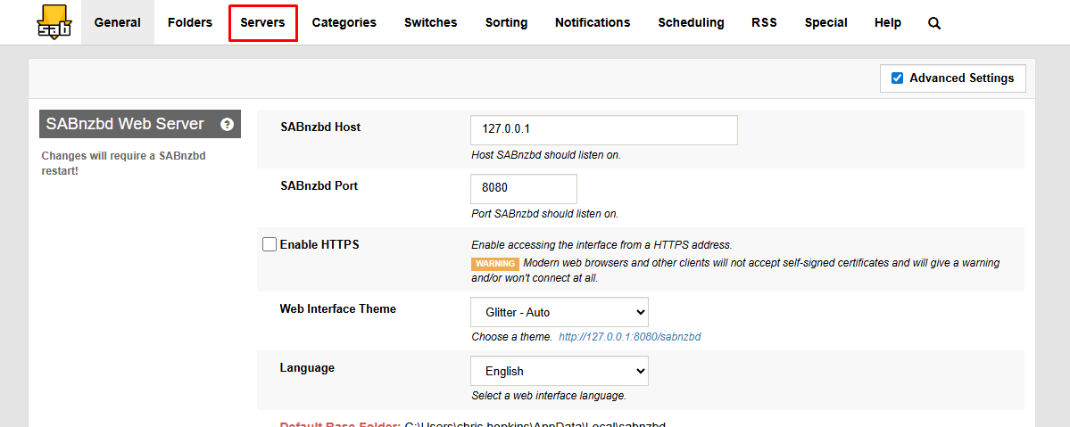 - Restart SABnzbd after changing advanced settings.